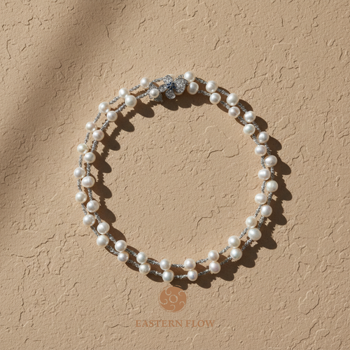 Handcrafted multi-strand alloy necklace with luminous freshwater pearls, aligned with the Metal element. It brings clarity, focus, confidence and gentle protective energy. Layered design for elegant daily and dressy styling, lightweight and comfortable to wear. A beautiful statement piece and thoughtful spiritual gift.